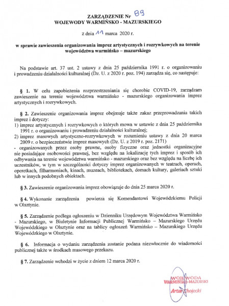 Wersja obowiązująca z dnia 12-03-2020 09:24:52 Drukuj Zarządzenie Wojewody Warmińsko-Mazurskiego Załączniki Zarządzenie format: pdf, rozmiar: 263.29 KB, data dodania: 12-03-2020 09:24:52