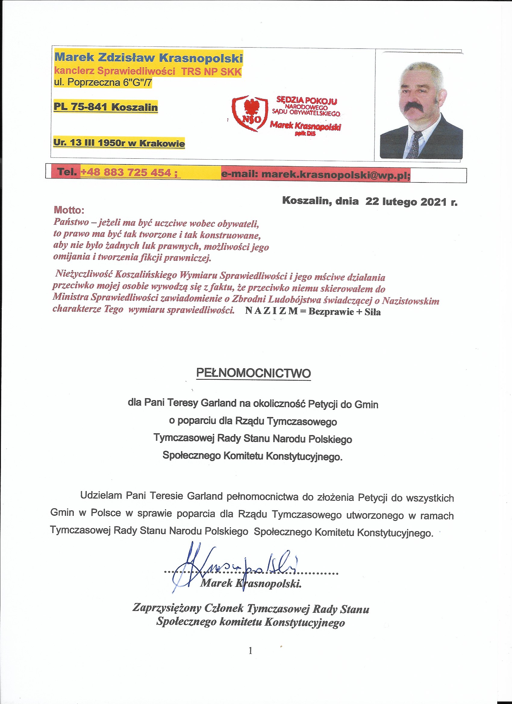 > Wnoszący Petycję w imieniu Komitetu Tymczasowej Rady Stanu Narodu