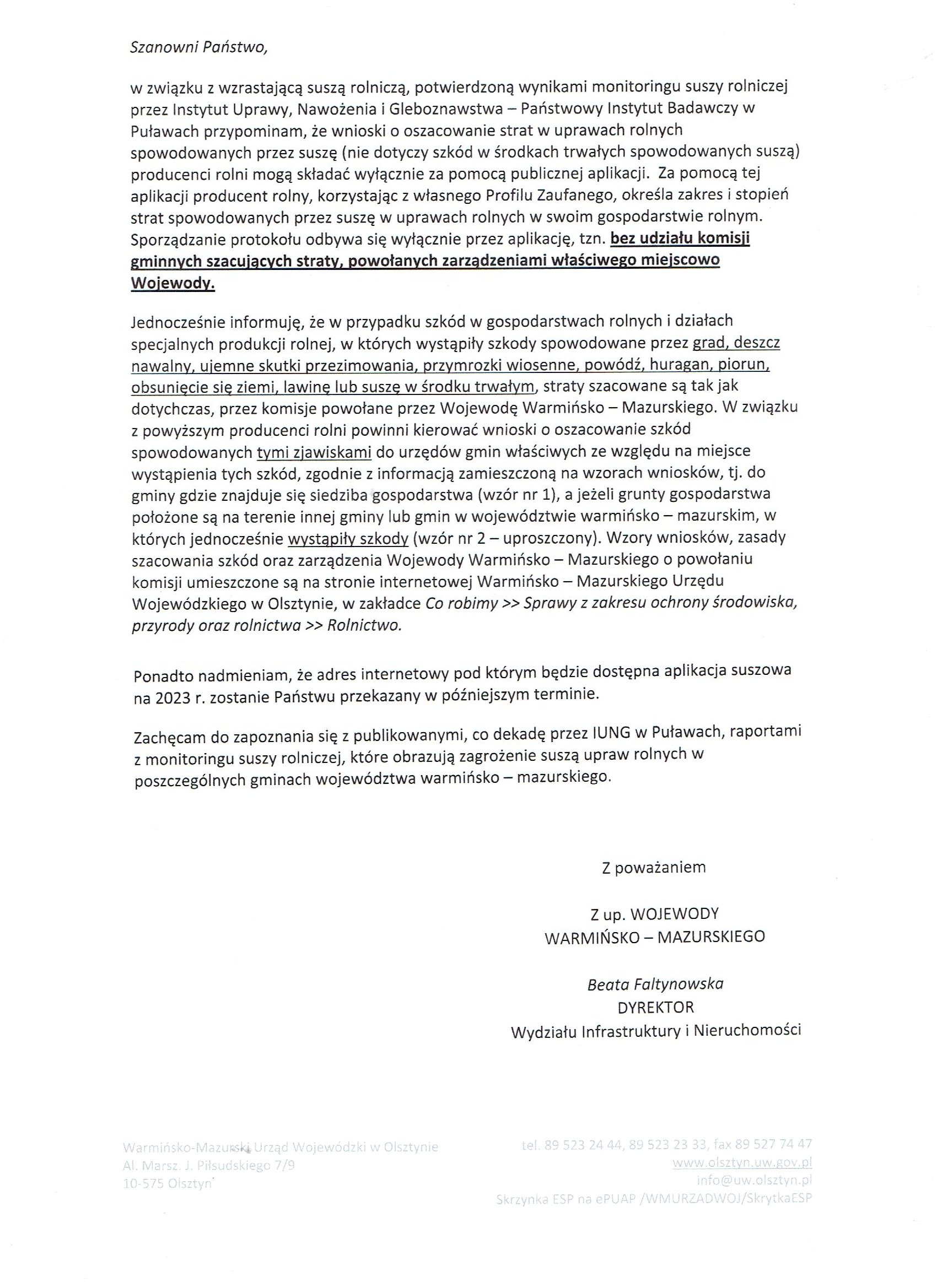 Wersja obowiązująca z dnia 07-06-2023 12:07:56 Drukuj Komunikat w sprawie suszy Załączniki W sprawie suszy format: image/jpeg, rozmiar: 506.64 KB, data dodania: 07-06-2023 12:07:56