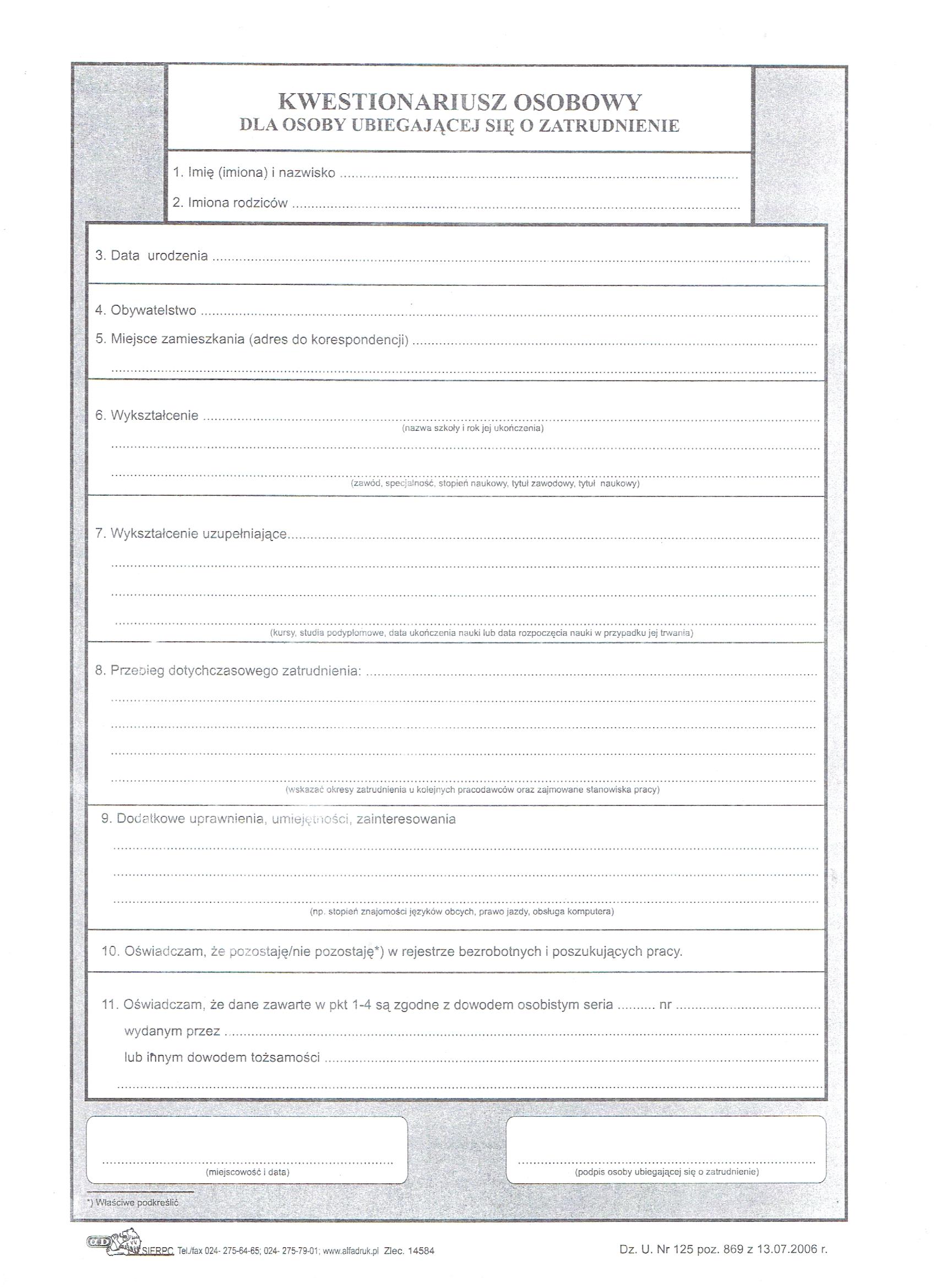 kwestionariusz osobowy